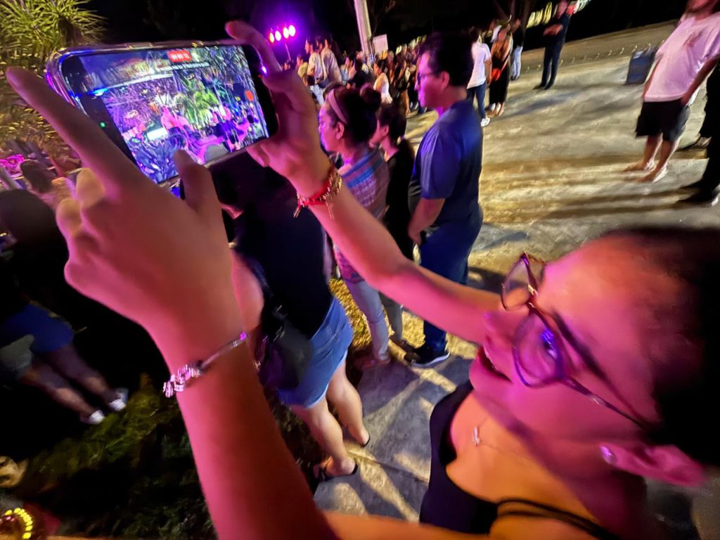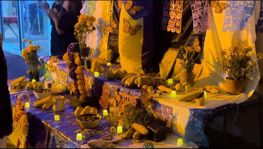 Aunque las presentaciones de danza dieron inicio formalmente a las 20:00 hrs, el ambiente festivo ya se sentía desde antes. Familias, amigos y turistas recorrían el lugar escuchando explicaciones de altares, degustando alimentos y compartiendo un ambiente tradicional.